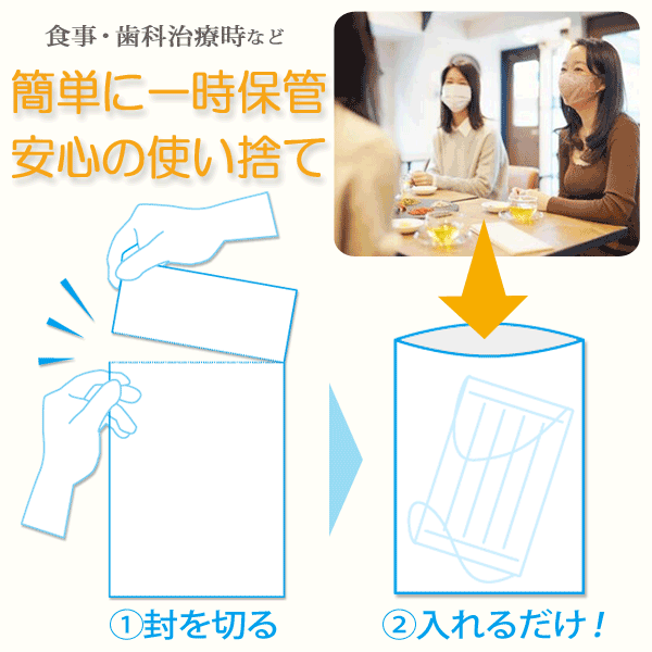 外出先でもマスクを一時的に保管できる、紙製のディスポーザブル(使い捨て)のマスクケースです。